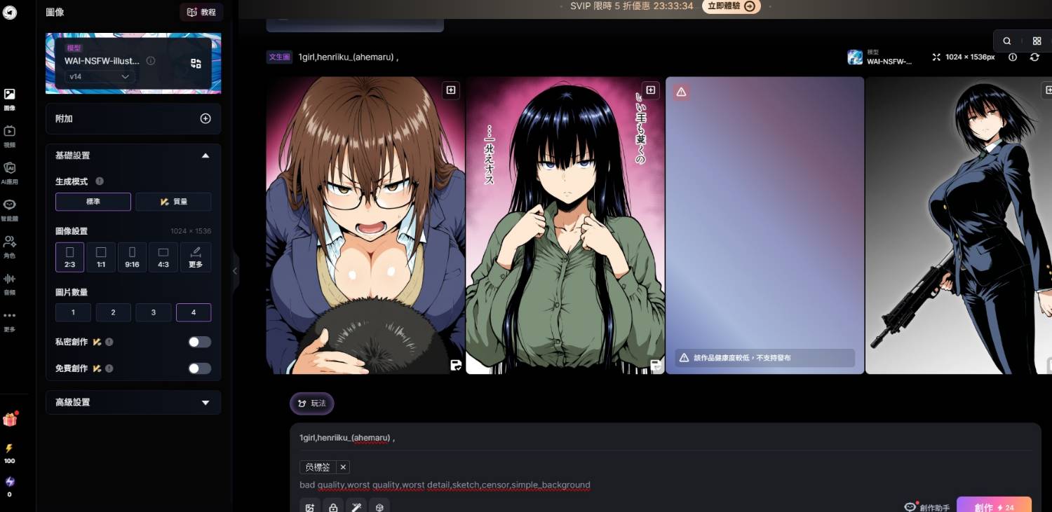 這邊問題是免費生圖很貴 每天給一萬點生一次就幾千了 但沒啥禁字