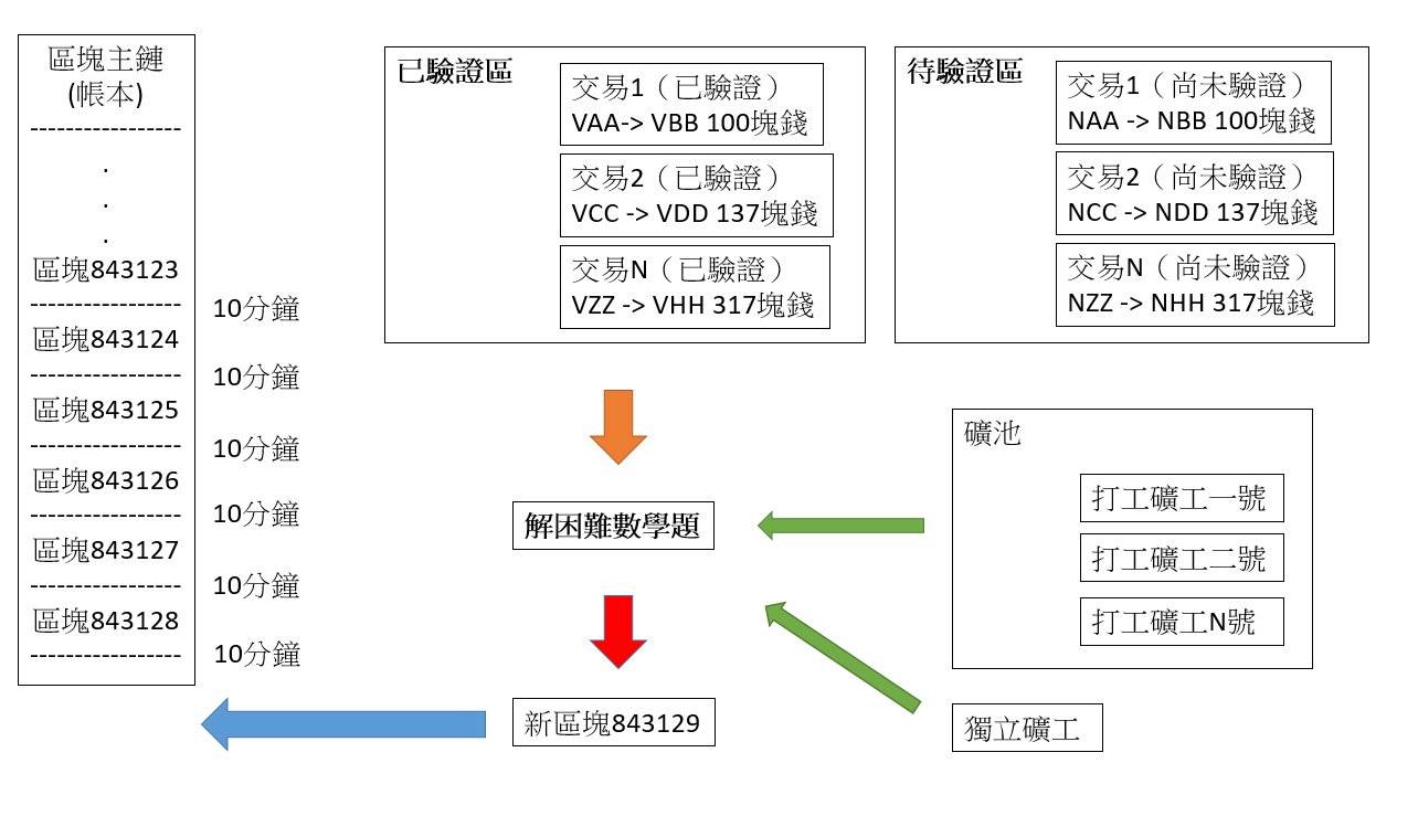 3. 當許多礦工驗證交易後將交易放到已驗證區。