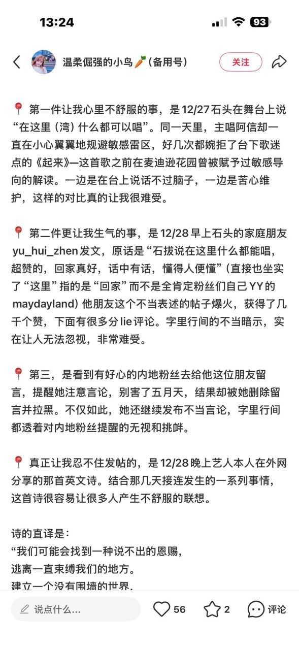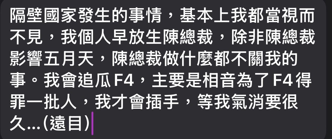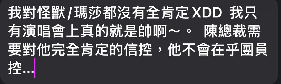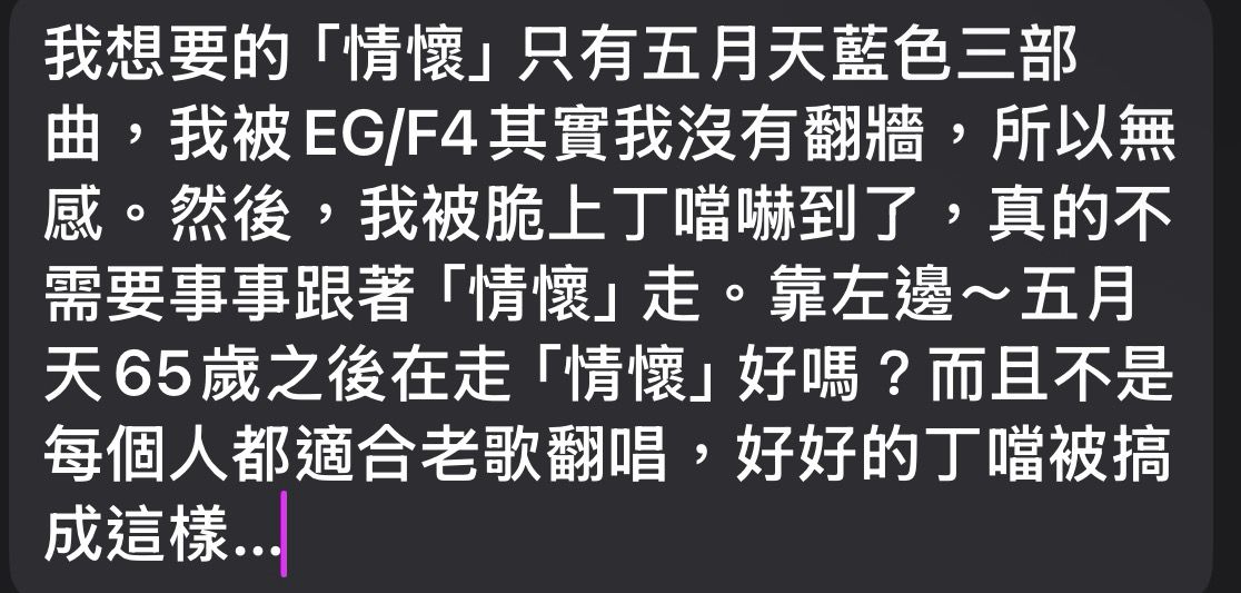 Forever x2出來後 第一次被這麼多路人關心「主唱怎麼了」 (誒我不是早宣布脫粉了嗎哈) 看了後也真是嚇一跳,真的是@@的那種 更蛤的是他直播解釋手會什麼要動來動去 一是我覺得沒必要解釋 二是為什麼不直說「我覺得這樣很帥啊」 真辛苦,而且不懂為什麼要搞得那麼辛苦 2024那一天後我就不再聽了 覺得難以名狀的苦悶和心痛 但這一次因為驚嚇過度 反而有助於我徹底割裂過去、現在和未來 開玩笑的說,反正主唱可能真的被奪舍了 可以安心聽以前的歌了哈哈哈 真好聽 大家都還好嗎? --