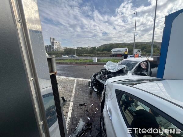 ▲楊梅休息站發生嚴重車禍,汽車連撞5車釀3傷。(圖/記者沈繼昌翻攝,下同) https://i.mopix.cc/4HPT8F.jpg