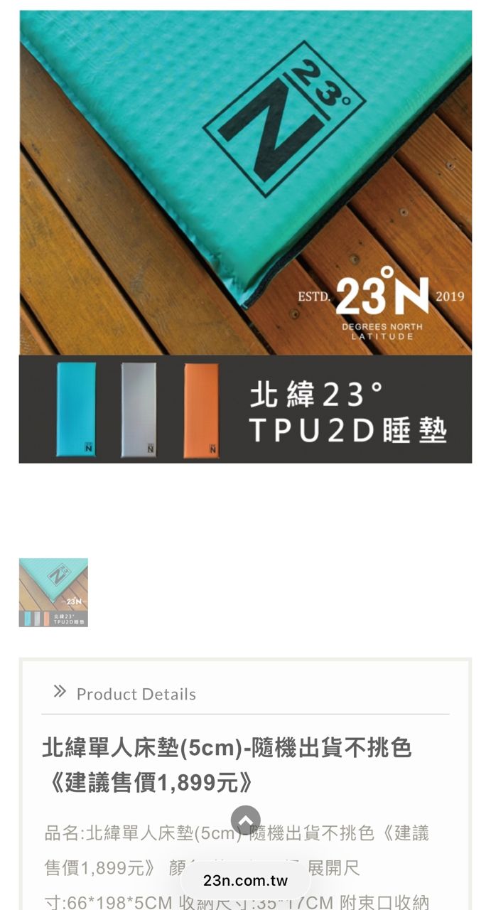 ◎產品名稱:北緯23度 TPU單人床墊*2(合售或拆售皆可) ◎產品型號:TPU單人床墊(深藍色),附束口收納袋 ◎產品尺寸: 展開尺寸:66*198*5CM 收納尺寸:35*17CM ◎購買日期:2024/04 ◎保固期限:無 ◎交易價格:$1200/個,兩個一起帶$2000 ◎品項狀況:僅使用5露,正常使用痕跡 裝備調整+露營時較常使用雙人,故將多品項的出售 適合輕裝或單人露營 ◎實物照片: https://i.mopix.cc/6XMeIq.jpg