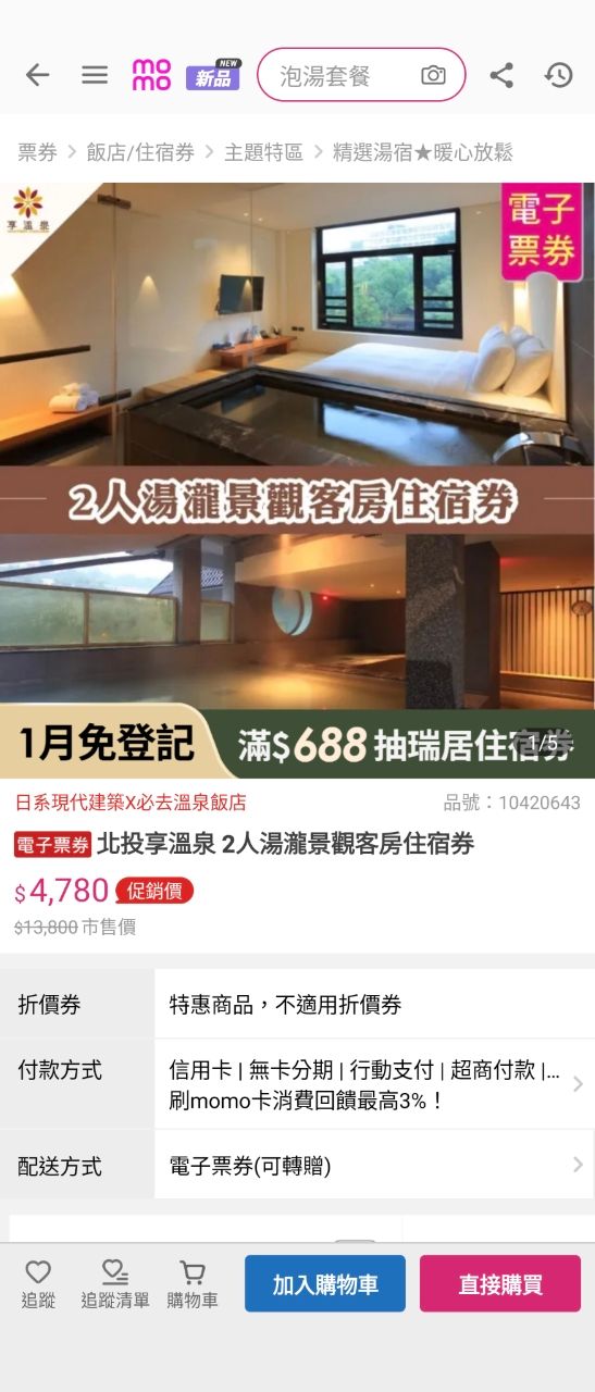 標題[販售] 北投享溫泉 雙人住宿momo電子票券