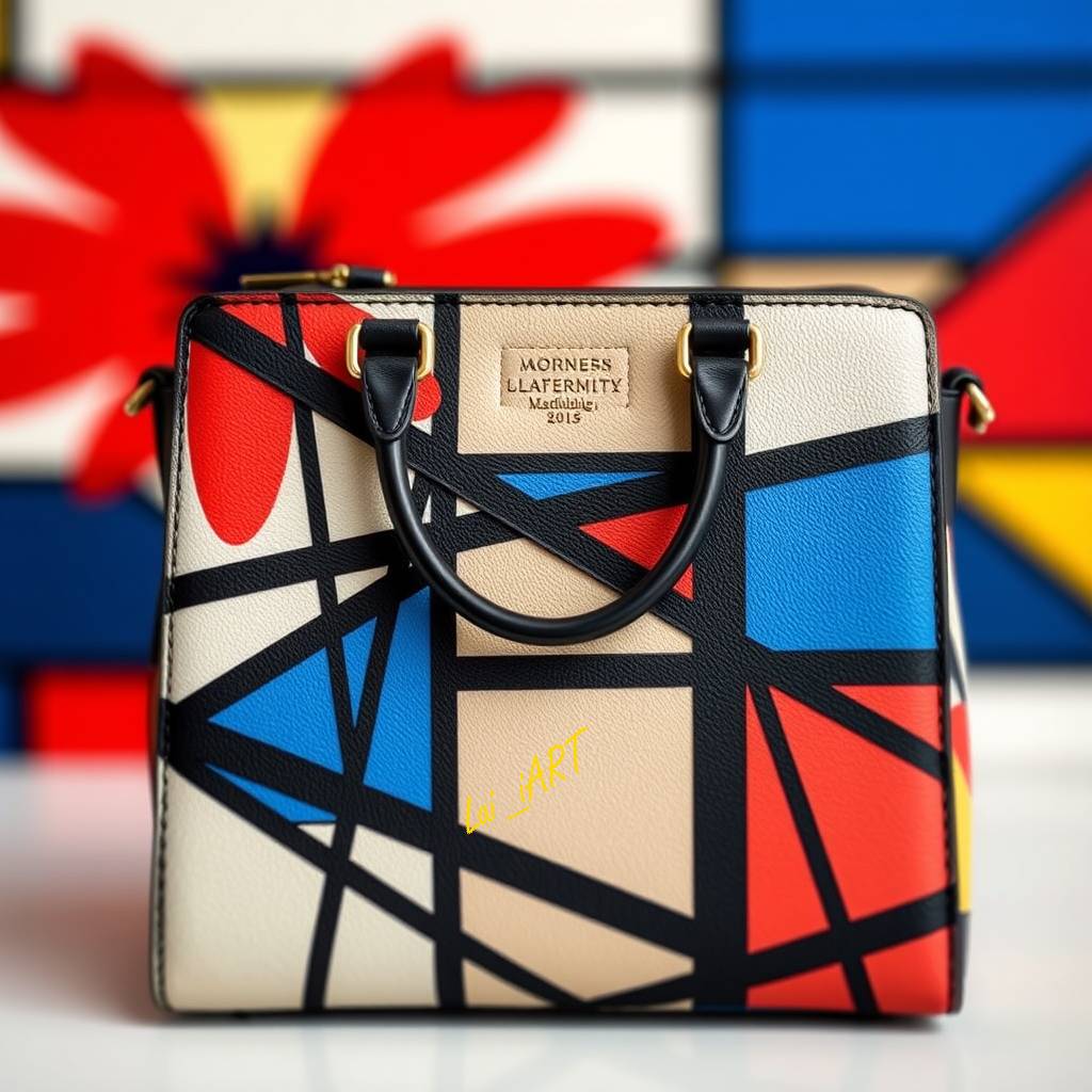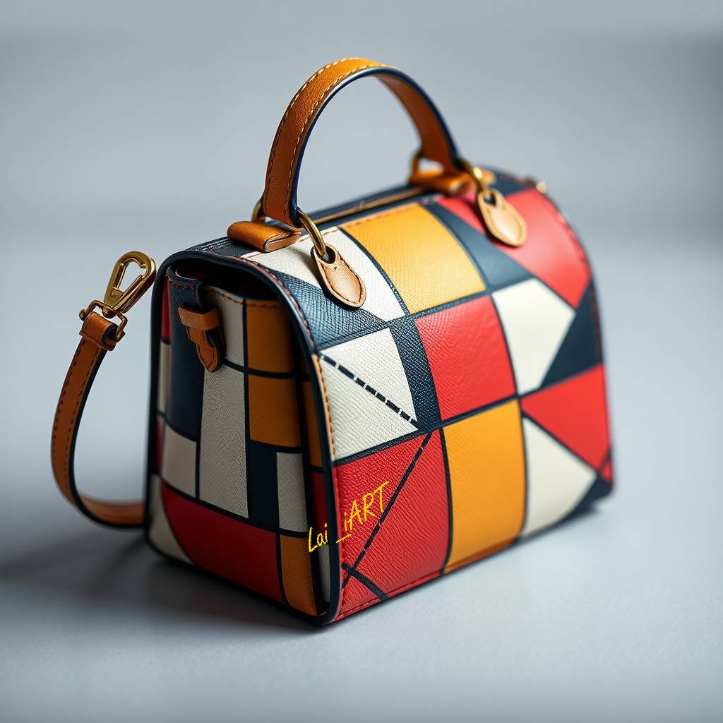 我用女生包包為例,「女生的手提包,外觀用Piet Mondrian的畫風來裝飾, 精品攝影, 典