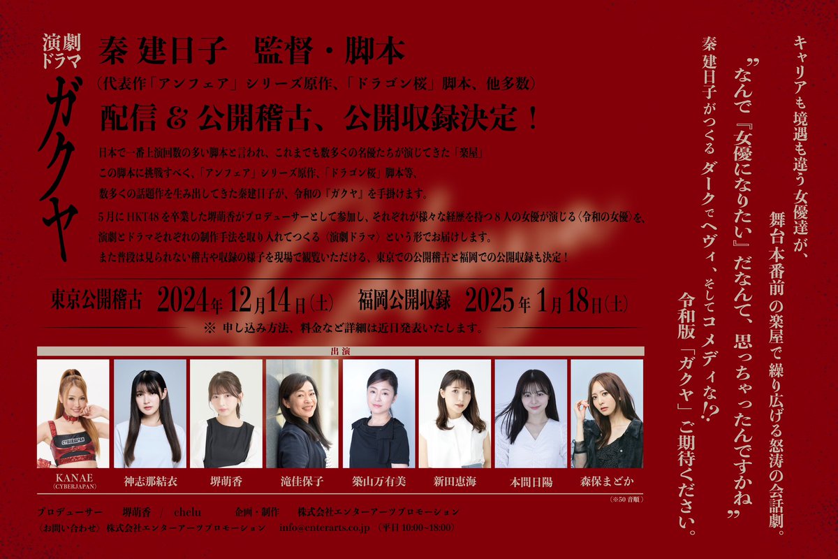 演劇戲劇「ガクヤ」 前HKT48堺萌香將以製作人身份参加