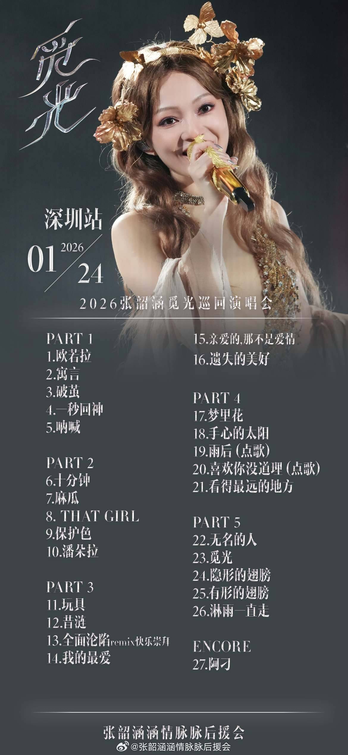 標題[情報] 2026年覓光世界巡迴演唱會深圳場歌單