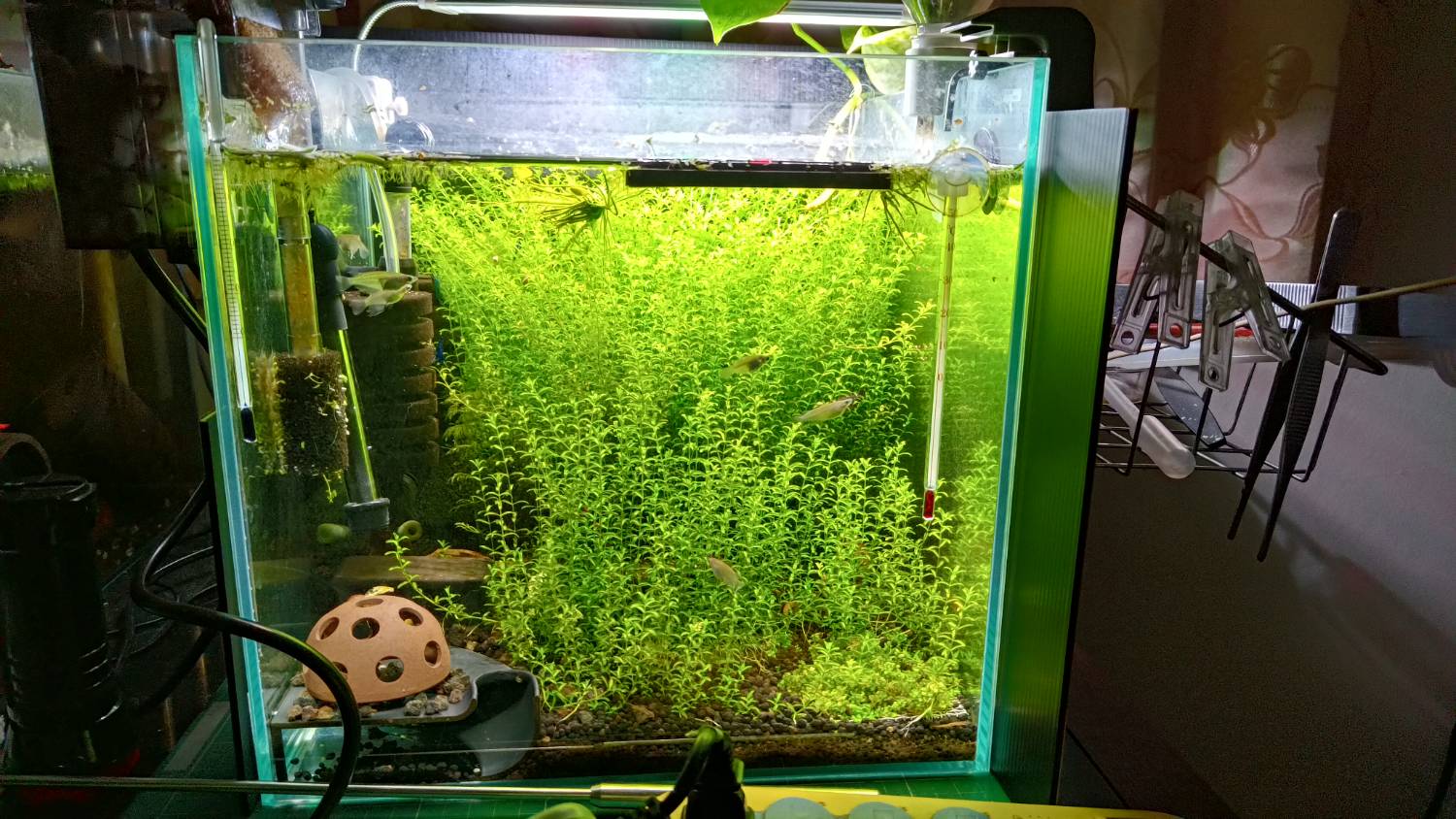 之前7月開的七彩稻田魚缸之後剩下三隻存活