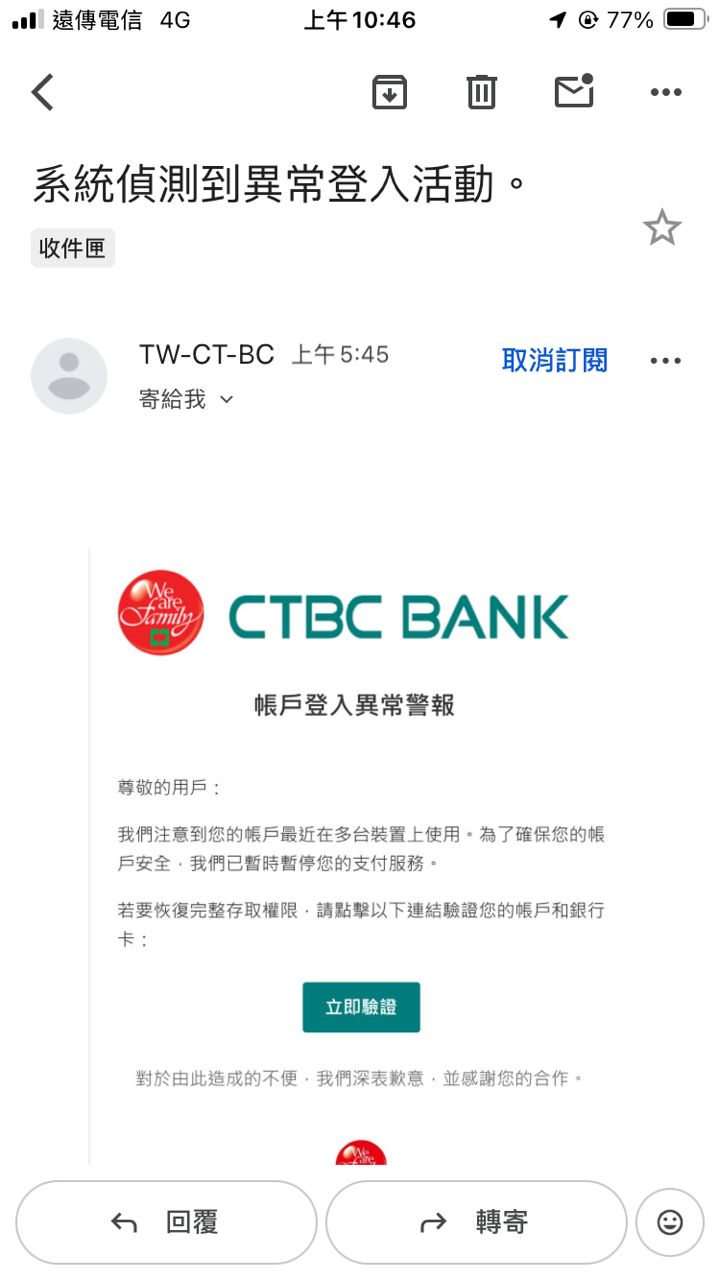 4F:→ alex1973: 我是中信客戶但是沒收到這種釣魚信, 這該開心嗎 ? 可是 06/25 08:17