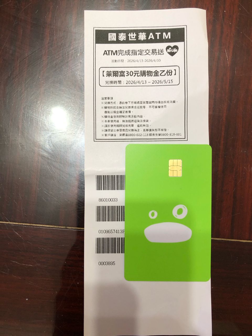 標題[情報] 4/13-6/30 萊爾富 國泰世華ATM 完成指定任務限量享好康