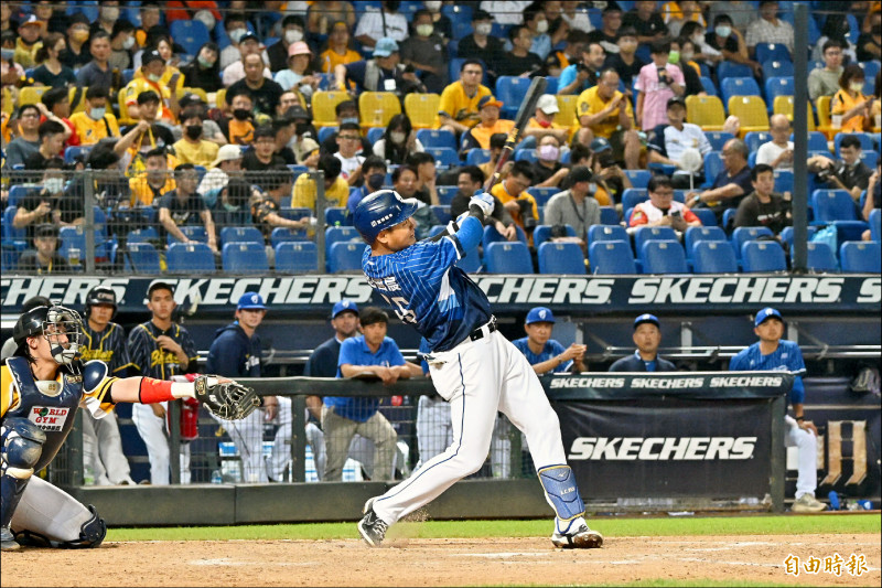 悍將范國宸第9局以三壘打帶動反攻,帶領球隊以5:4逆轉擊敗兄弟。(記者廖耀東攝)
