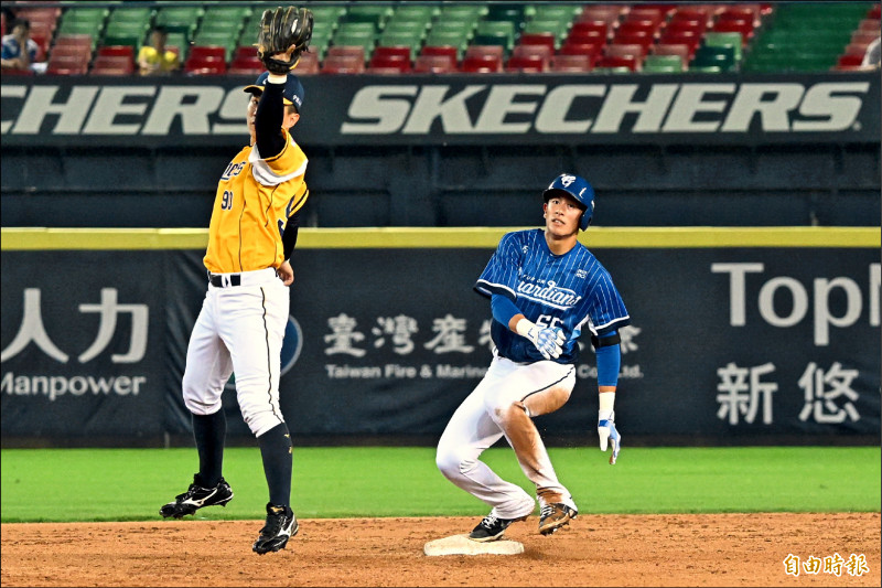 跑回富邦第1分,第5局再度二壘打,也跑回本壘,第7局擊出一壘打。