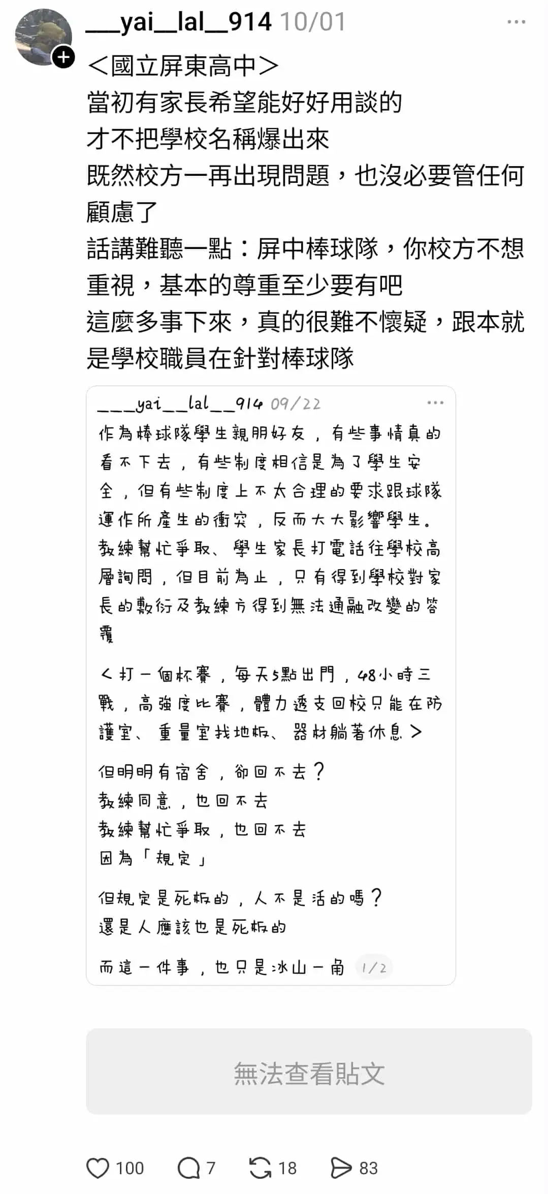 至於屏東高中宿舍事件...屏東高中學生會昨日發出公開聲明