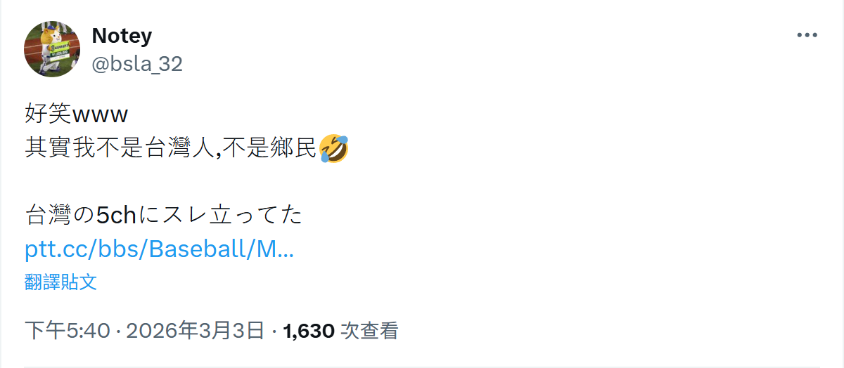 ※ 文章網址: https://webptt.com/m.aspx?n=bbs/Baseball/M.1772462287.A.0DF.html
