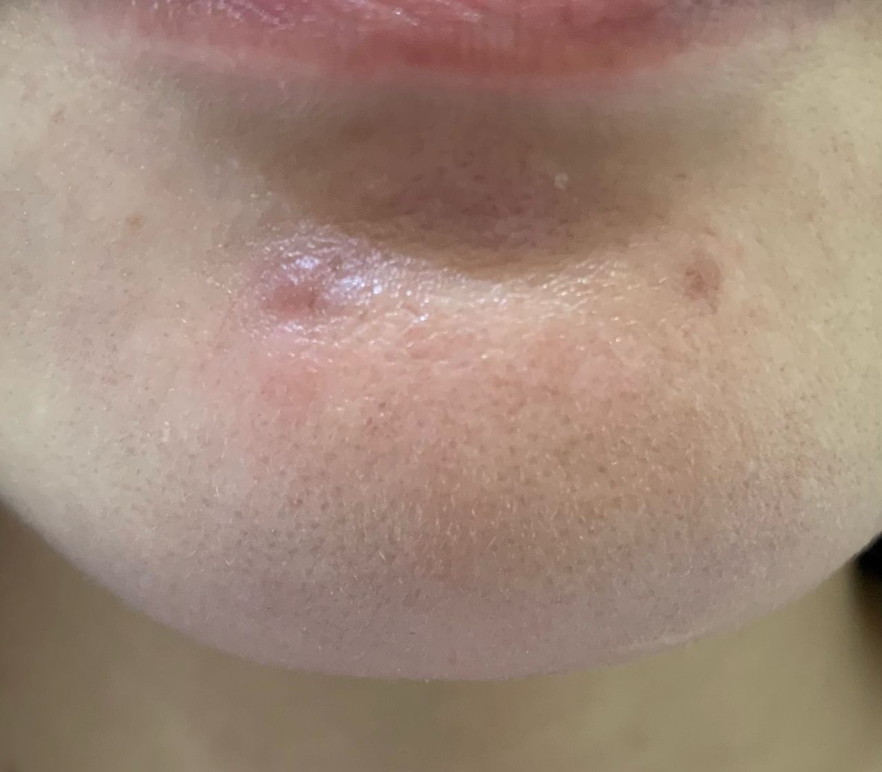 想請問化妝後下巴「立刻」變成這樣是發生什麼事,我其他地方都很正常好好的,就只有