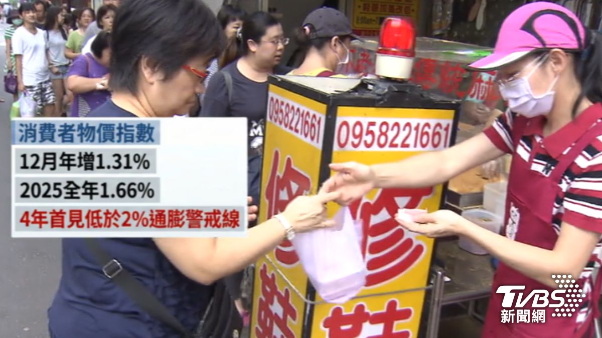主計總處最新公布的消費者物價指數顯示,全年CPI為1.66%,是4年來首次低於2%通膨警