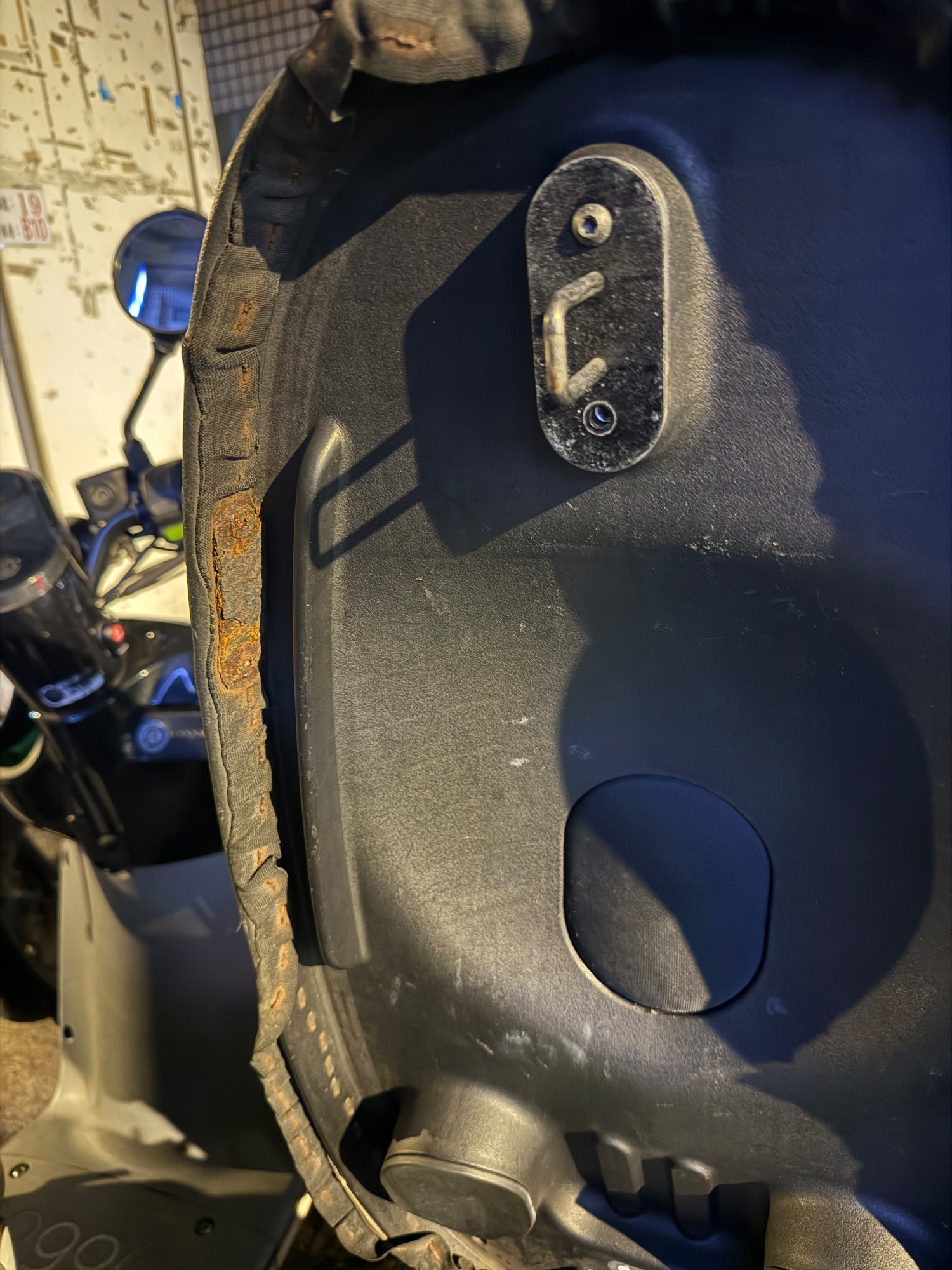通勤車所以難免有外殼刮傷,椅墊有破損及固定坐墊皮的釘子生鏽脫落,EK黃金油封鏈