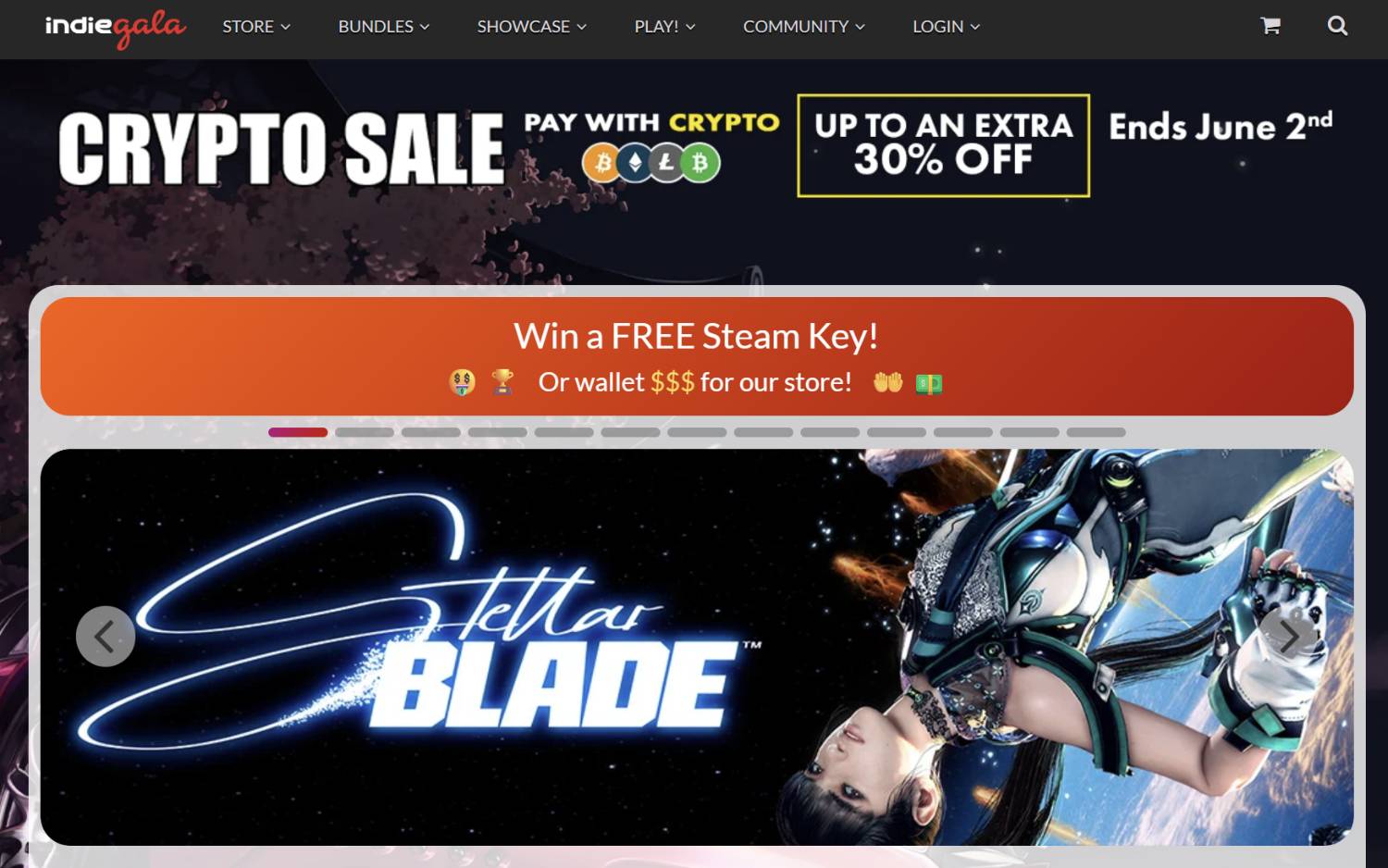 indiegala替所有用加密貨幣購買的組包打七折,一般消費打85折。