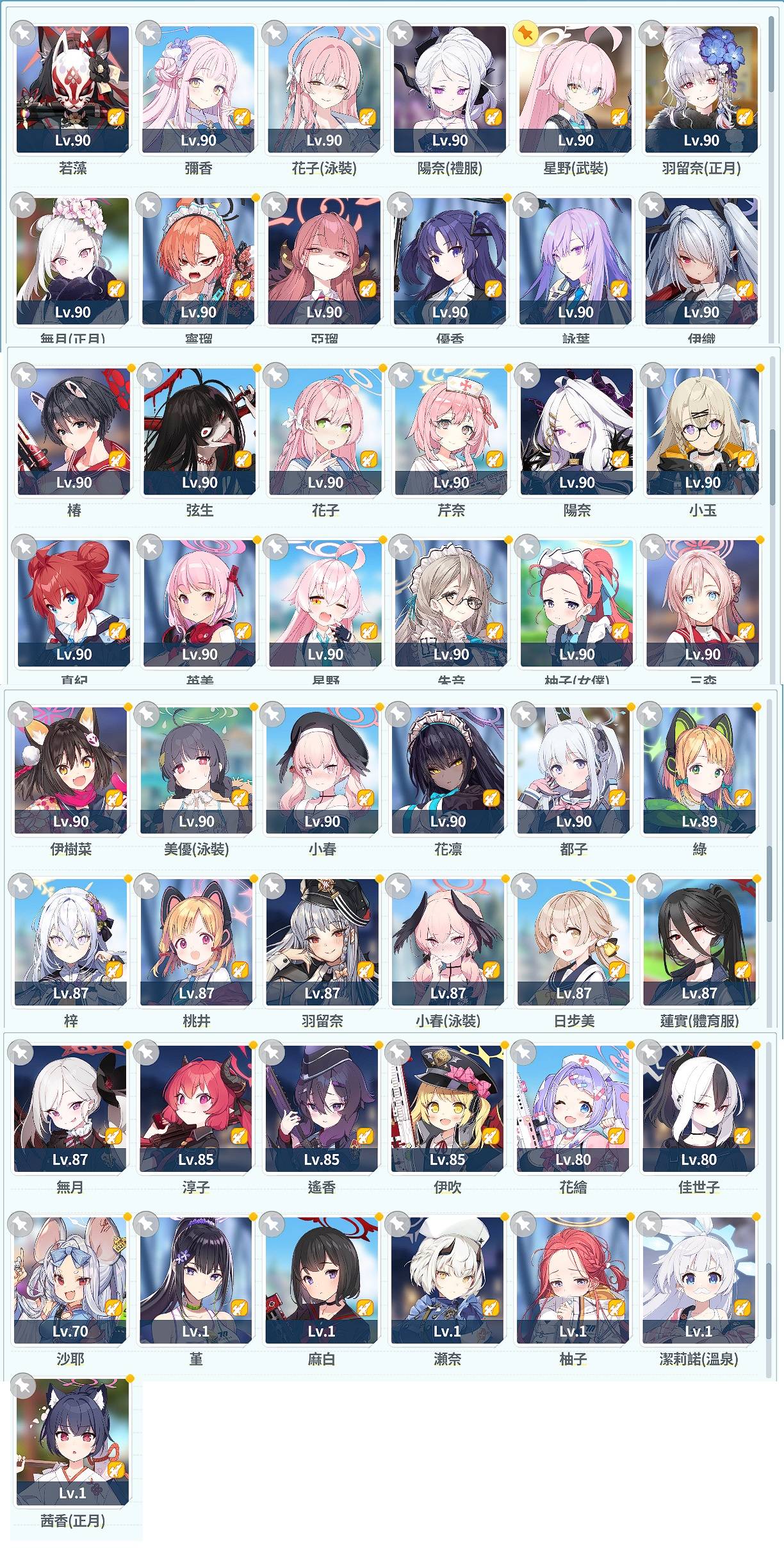 BD/筆記:各校至少3套練滿。大校5套以上。靠每月總力/決戰補充,庫存無壓力。