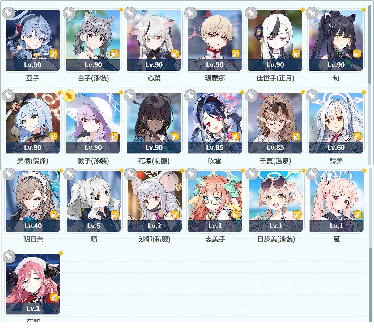 抽卡方面僅下門主1井、偶像池1保1。新增的16位學生都來自FES/免費百抽活動。