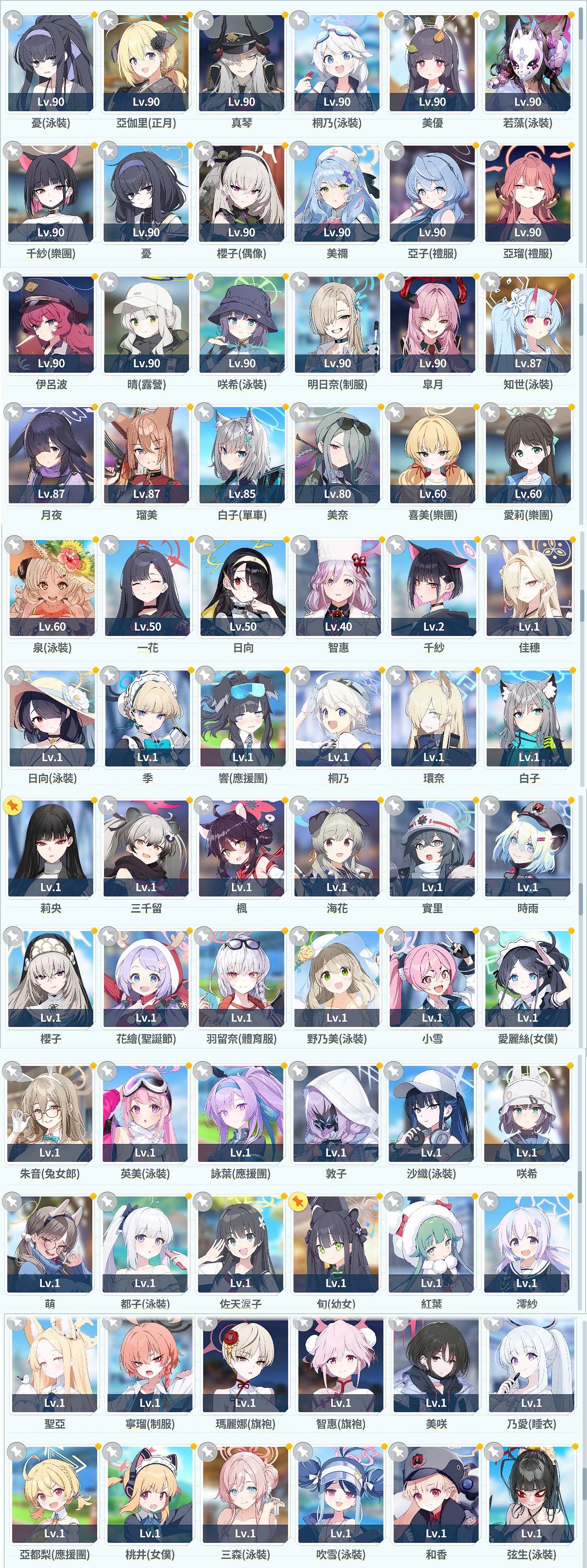 未開學生數量不完全準確,哇幹、尼祿、聖亞未來若有需求會直接母。