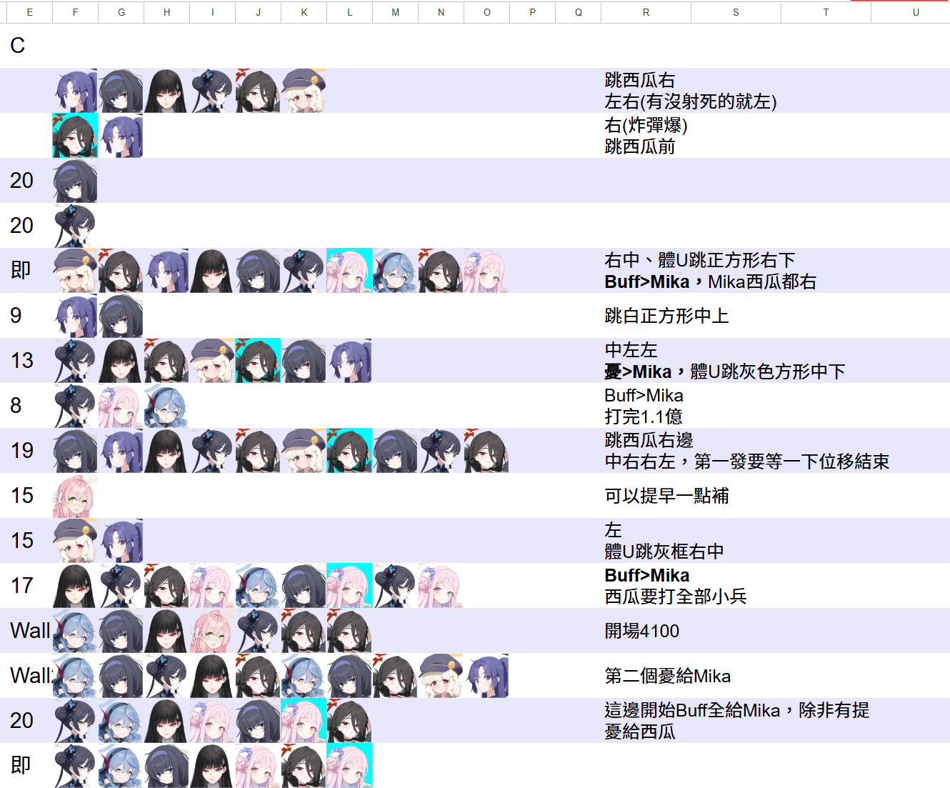 因為影片中buff最後給錯人了所以沒列完,反正最後就是buff給mika一直按而已