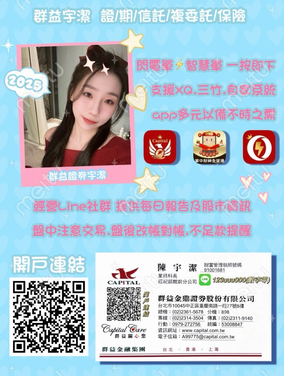 120F:→ angel8825: 您好~群益宇潔 歡迎聊聊 都好談12/04 09:38