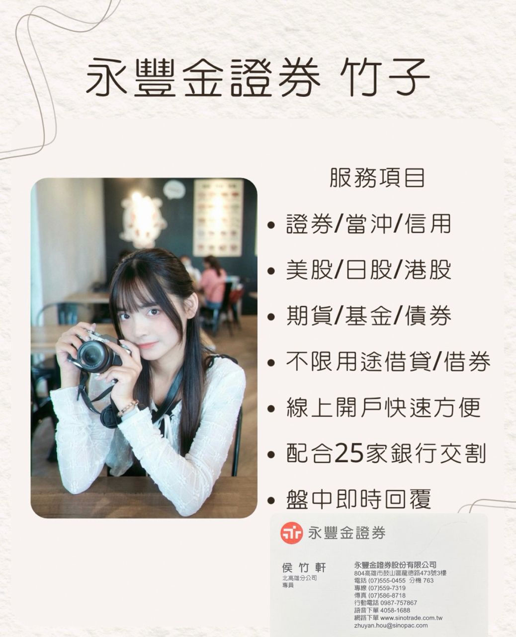 53F:推 elisswu: HI,我是永豐金證券資深副理-祥緯,於永豐服務超過02/03 07:30