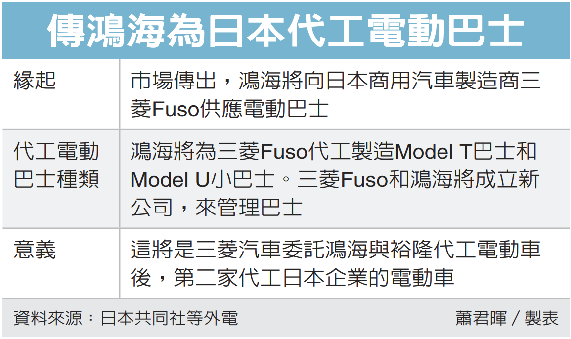 根據消息人士,鴻海考慮向三菱扶桑卡客車有限公司(Mitsubishi Fuso Truck and Bus