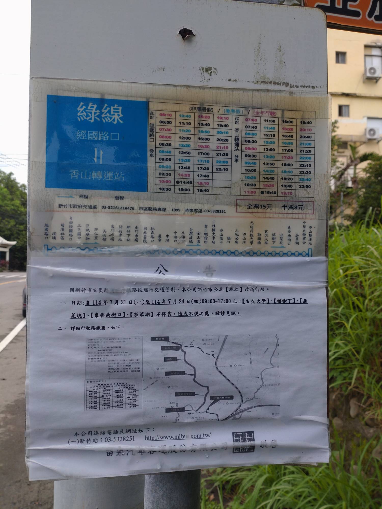標題[情報] 7/28~8/16 新竹市公車綠線改道景觀大道