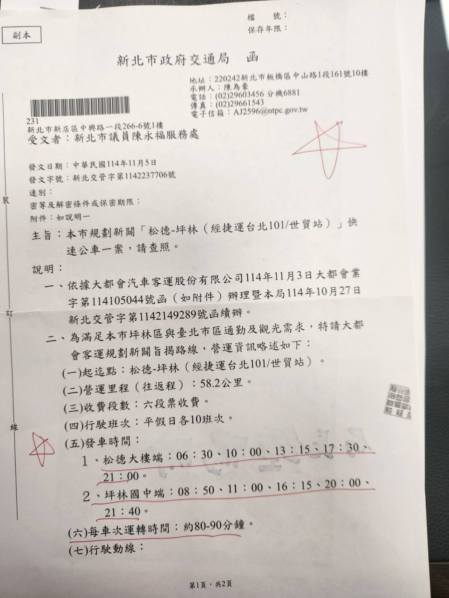路線名稱:松德—坪林(經捷運臺北101/世貿站)