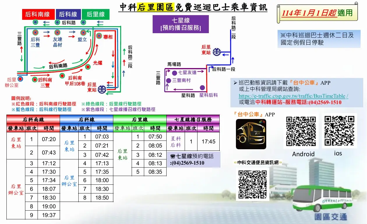 中科園區免費巡迴巴士 七星線 星科后科-后里車站