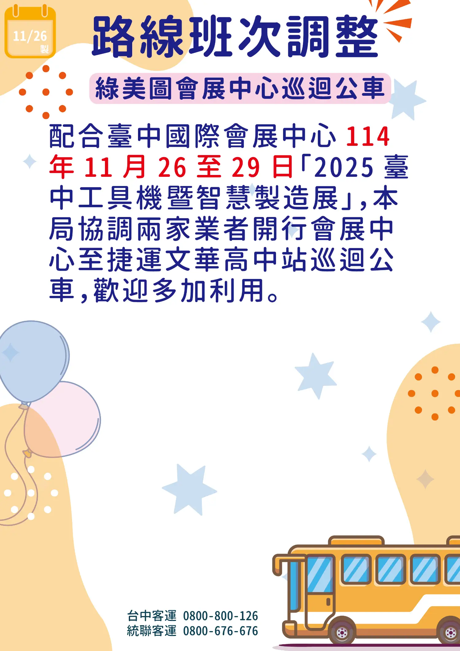 標題[活動] 251126 中客/統聯 綠美圖會展中心接駁公車