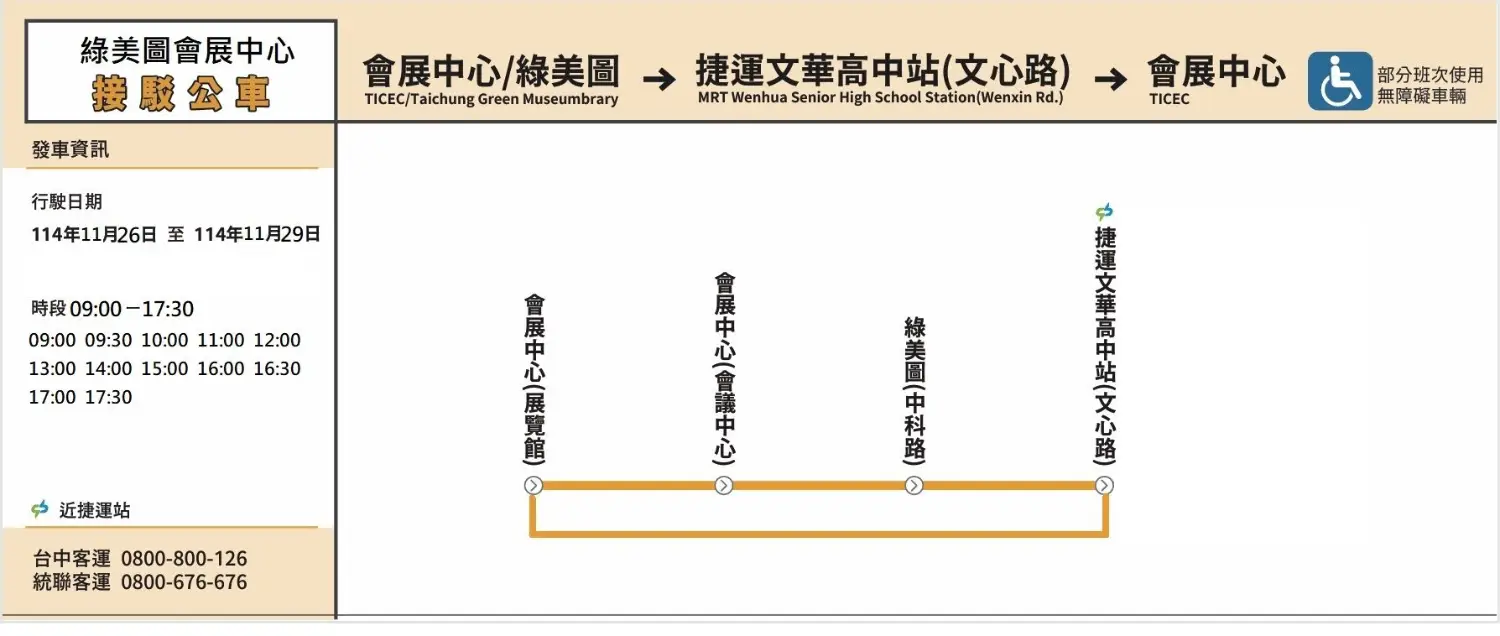 活動期間新增「綠美圖會展中心接駁公車」活動路線