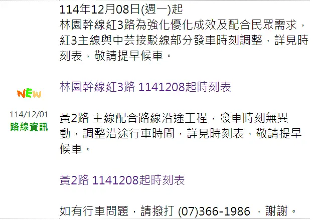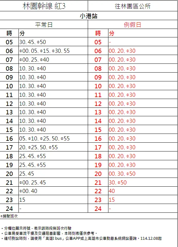 標題[時刻] 251208 港都 紅3(林園幹線)