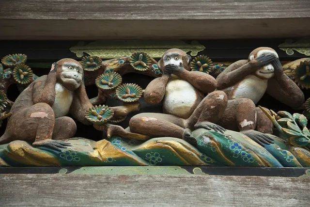 在日本一座幕府時代的寺院裡,就有一尊名為「三個智猴」(三不猿)的雕像——