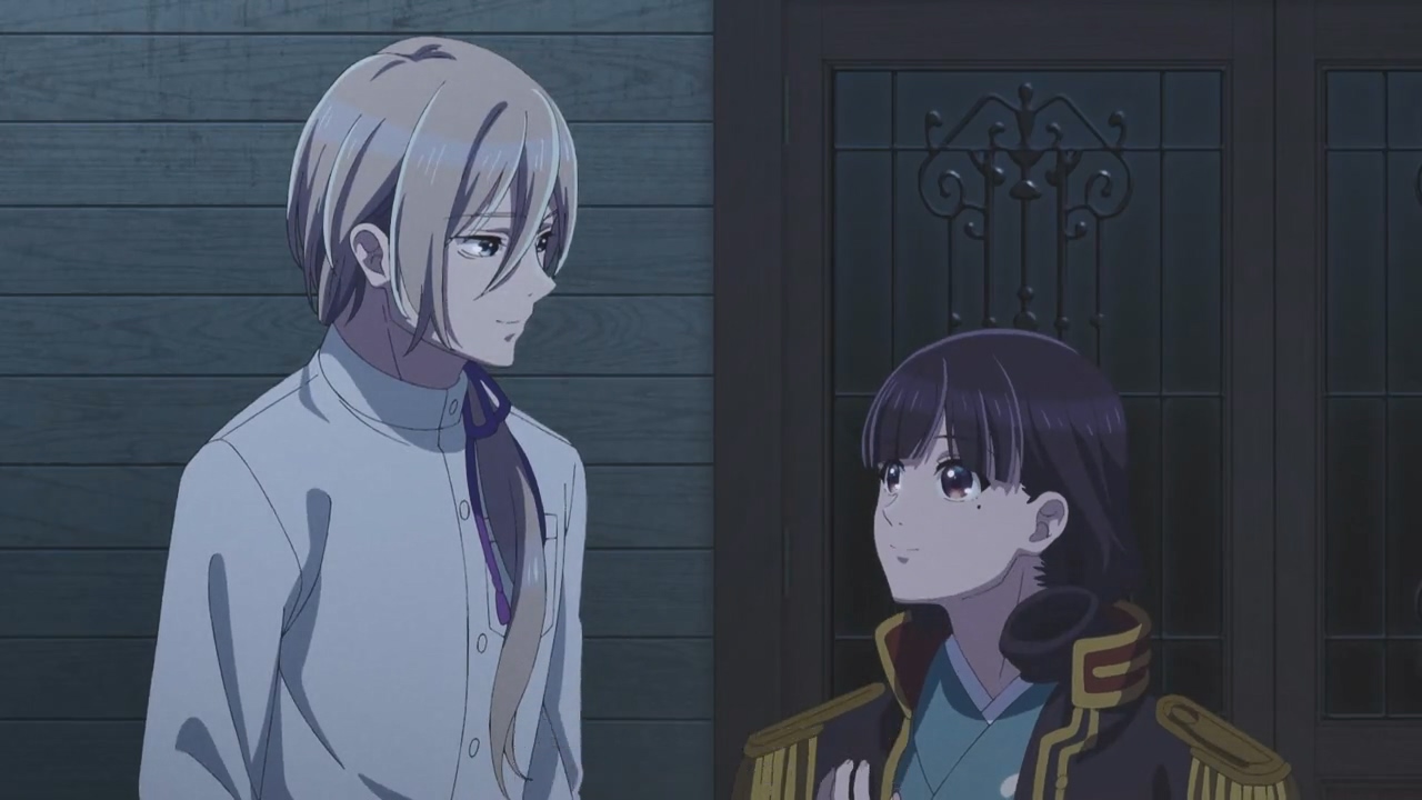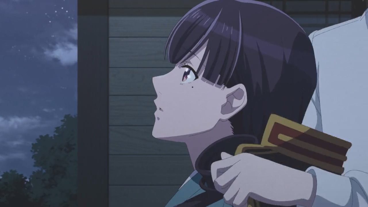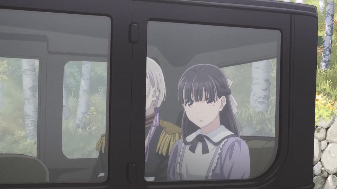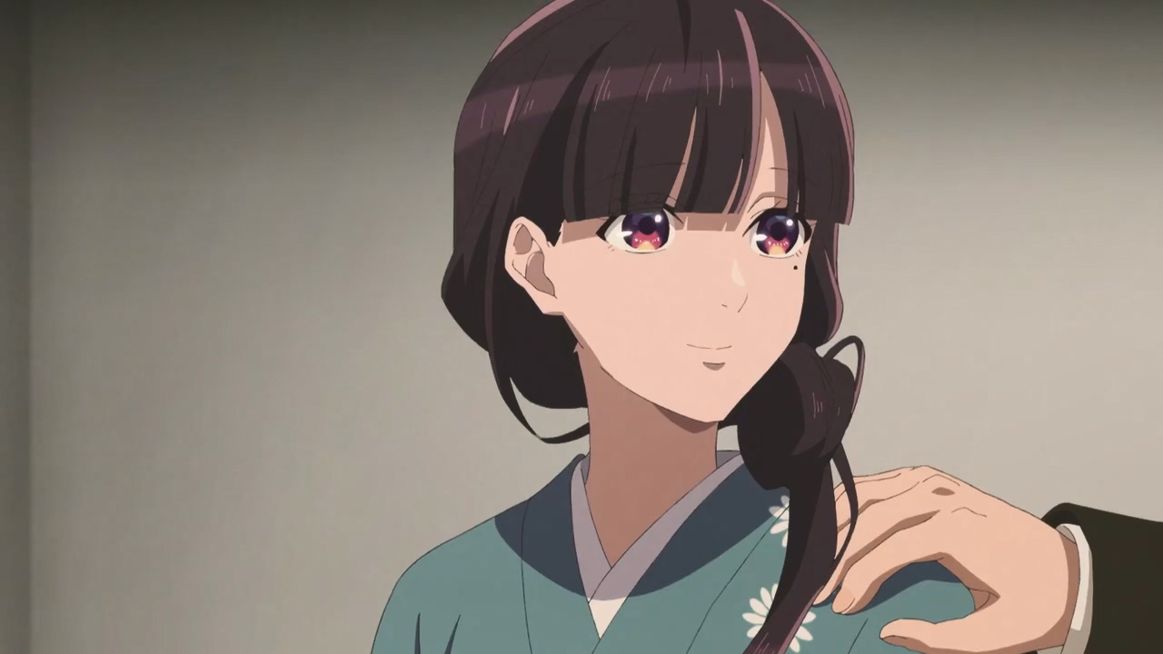 隔天 義母大人傲嬌了一番 算是承認了媳婦 離開時美世穿上洋裝、義母送的髮飾也戴上了。