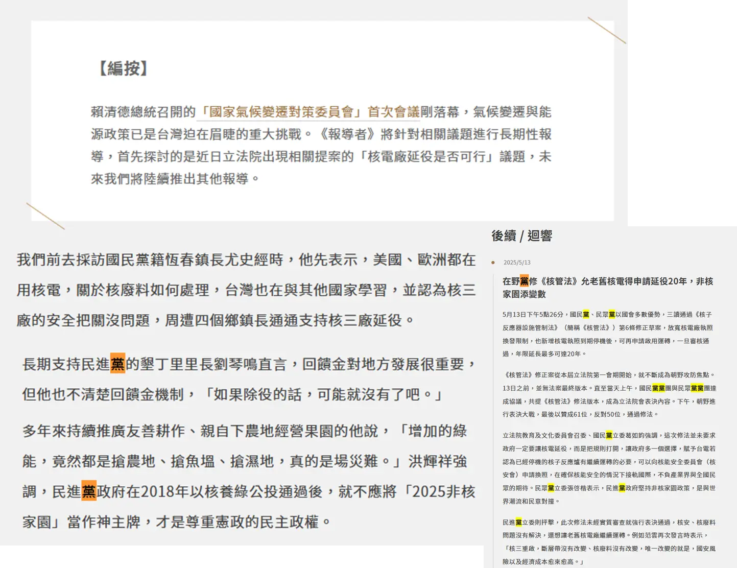 討論恆春居民對核電政策的政治立場,連結的新聞中亦有: