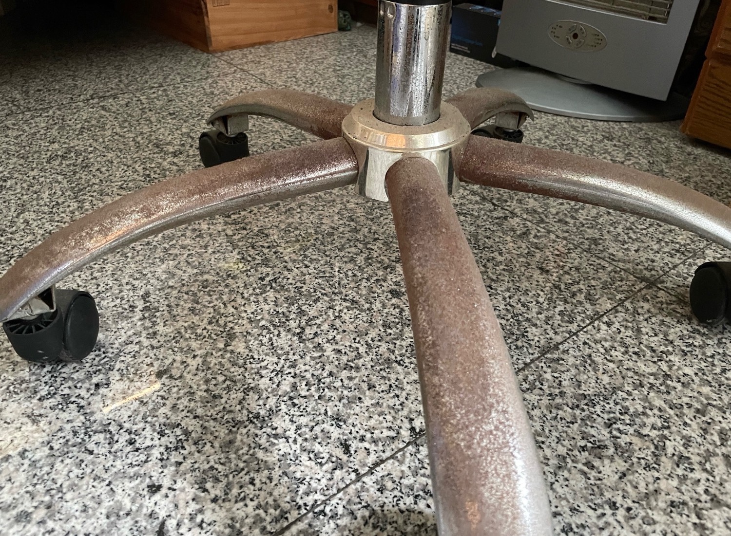 贈送物品:電腦椅,椅腳有生鏽痕跡,椅背末端的固定環有一小角破裂,不影響正常使用,輪