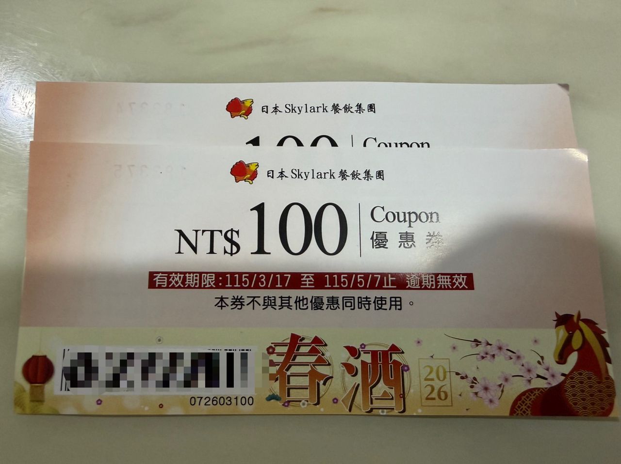 7張一起帶$6000,再送2張古拉爵折價卷。