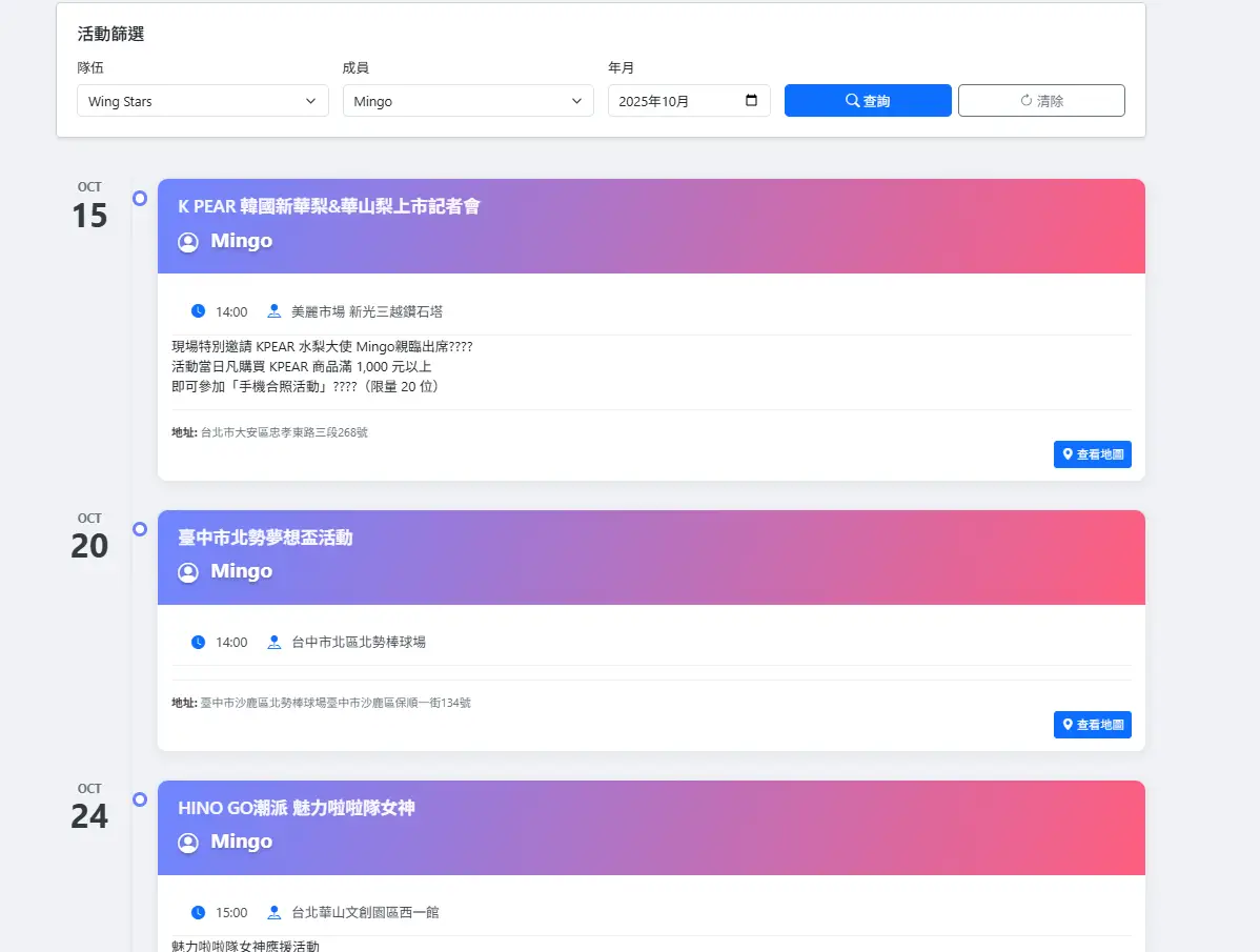 比如說想知道Mingo在10月的活動,就會跑出目前有宣傳的活動