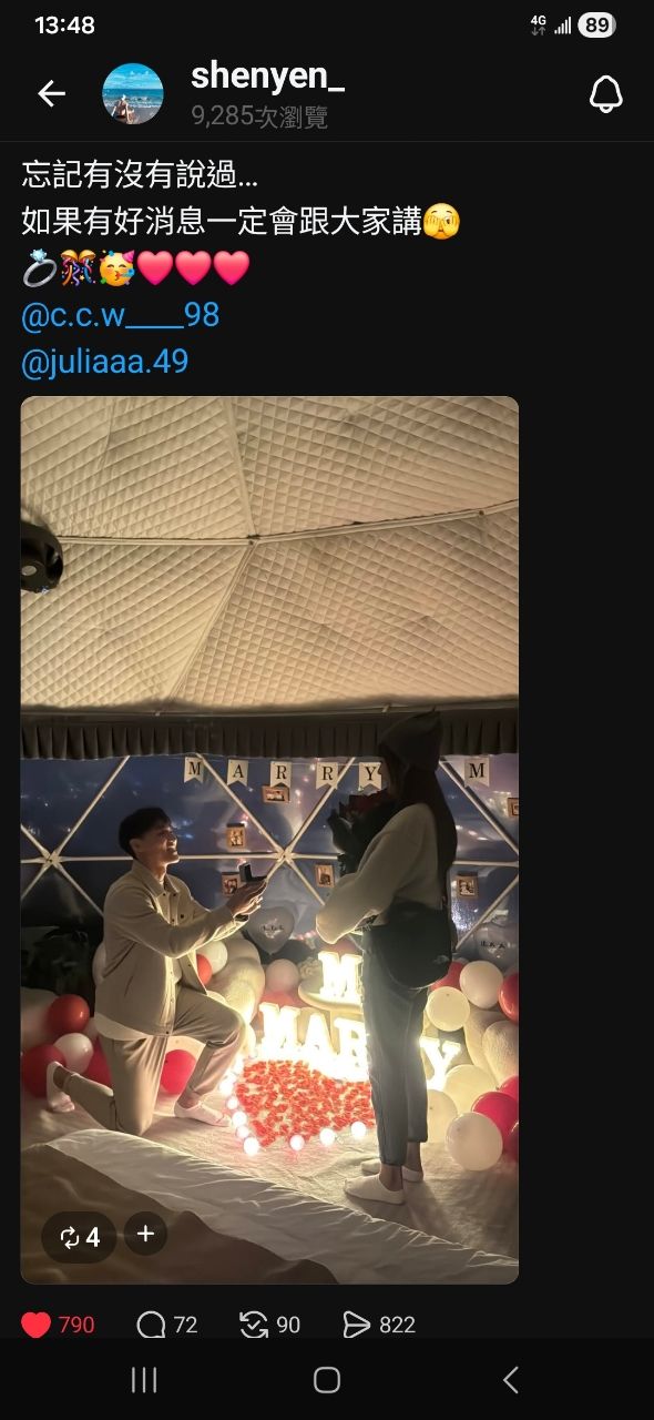 標題[閒聊] 陳晨威求婚Julia成功