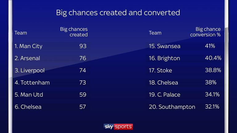 Player Team Big chances Scored Missed Conversion %