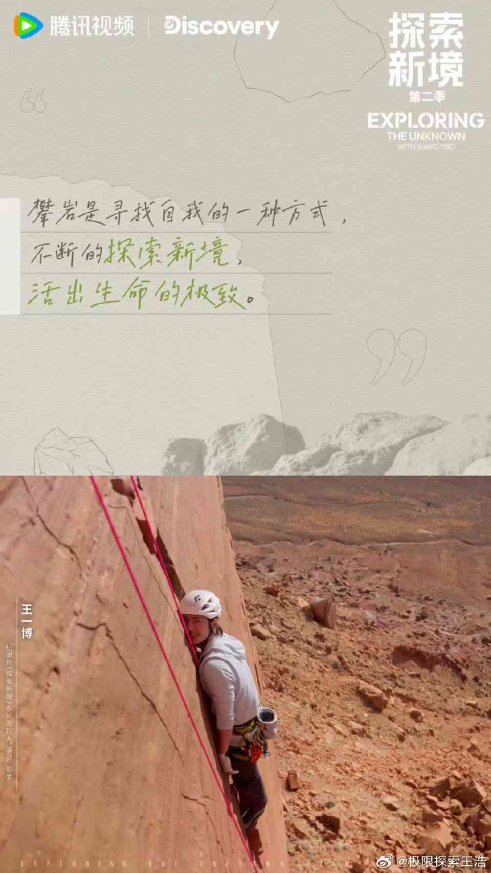 7F:→ robbile: 一博發文:「攀岩是尋找自我的一種方式,在岩壁上 11/17 10:20