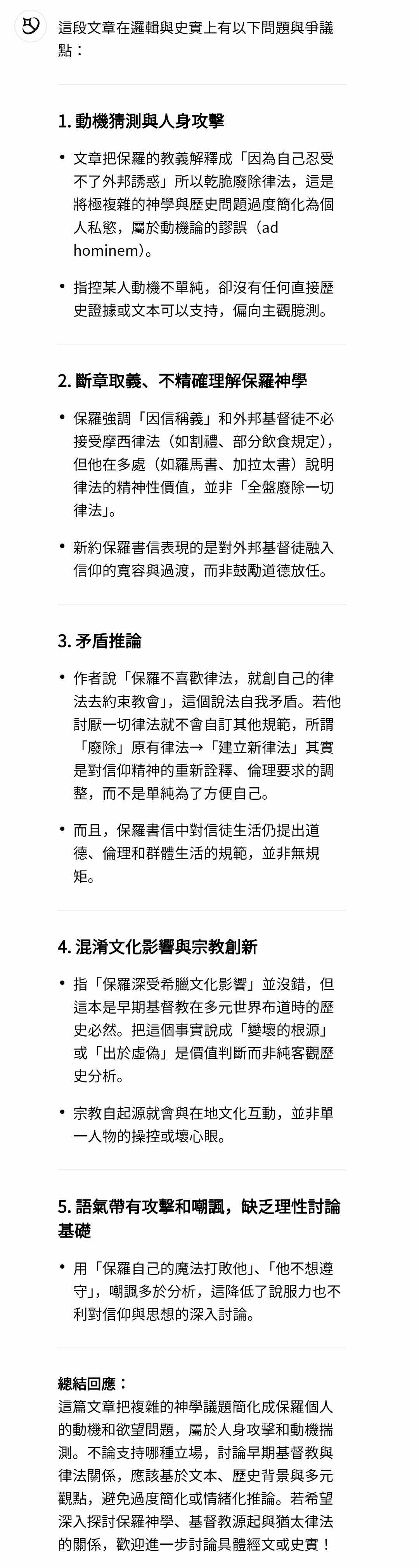 保羅說穿了是他深受希臘文化影響,不喜歡那些他不想遵守的律法,但其實他為了控制他