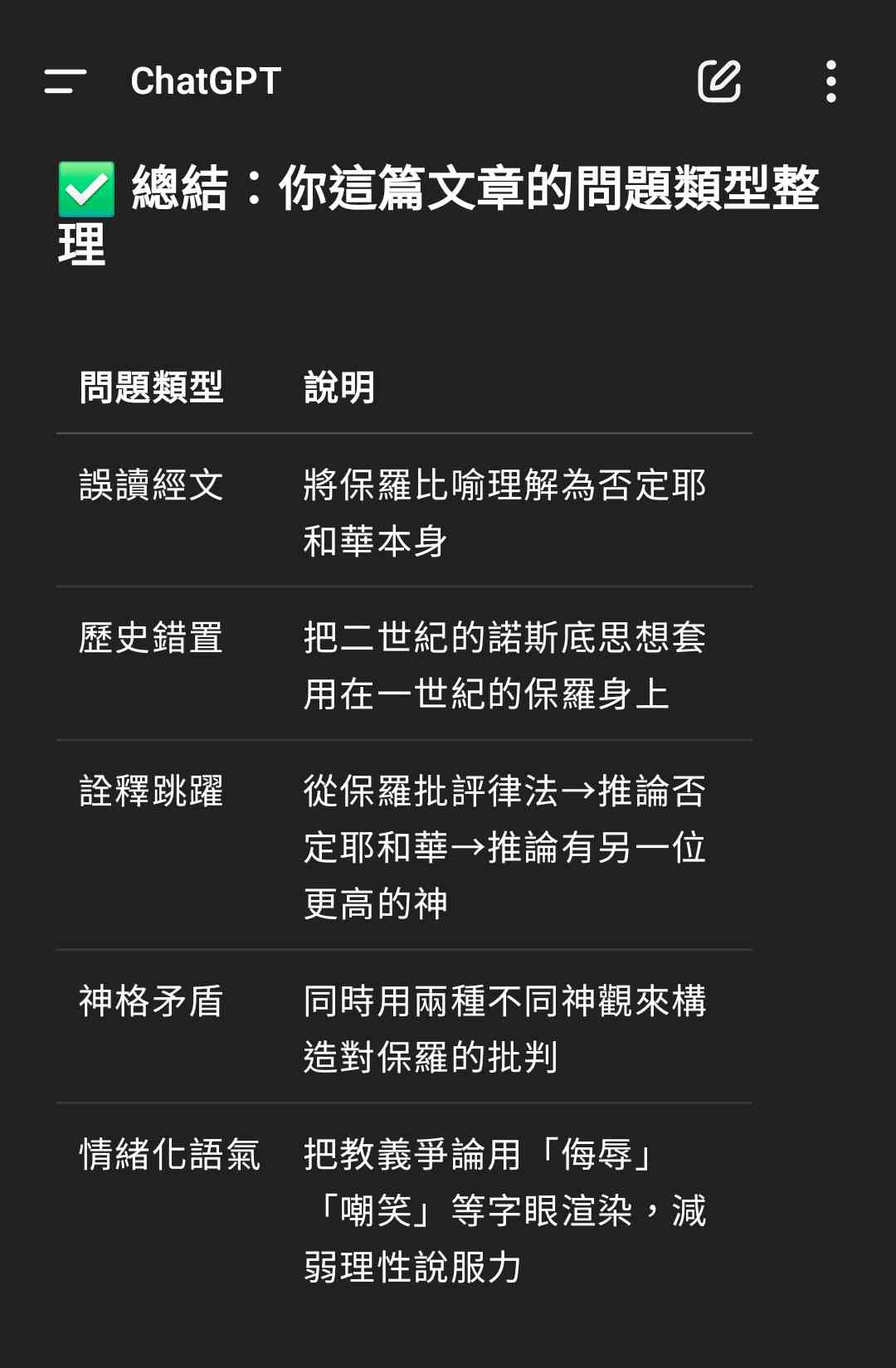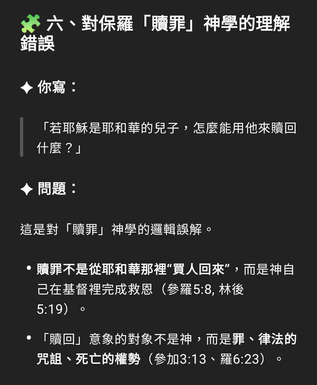 你那些AI搜尋的教會辯解文就和ptttalker之前給我的回文是一樣的說詞,我之前就有反