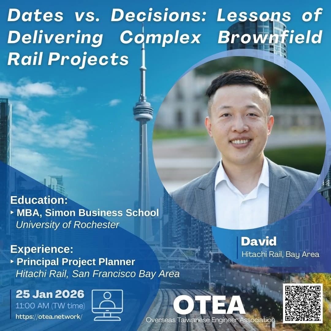 OTEA 很榮幸邀請到 David Lin —— 現任 Hitachi Rail(美國舊金山灣區)Princ