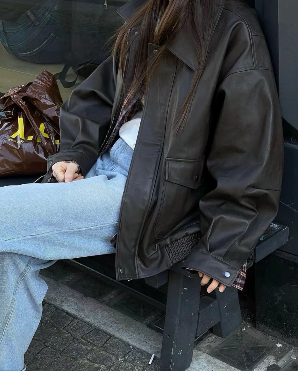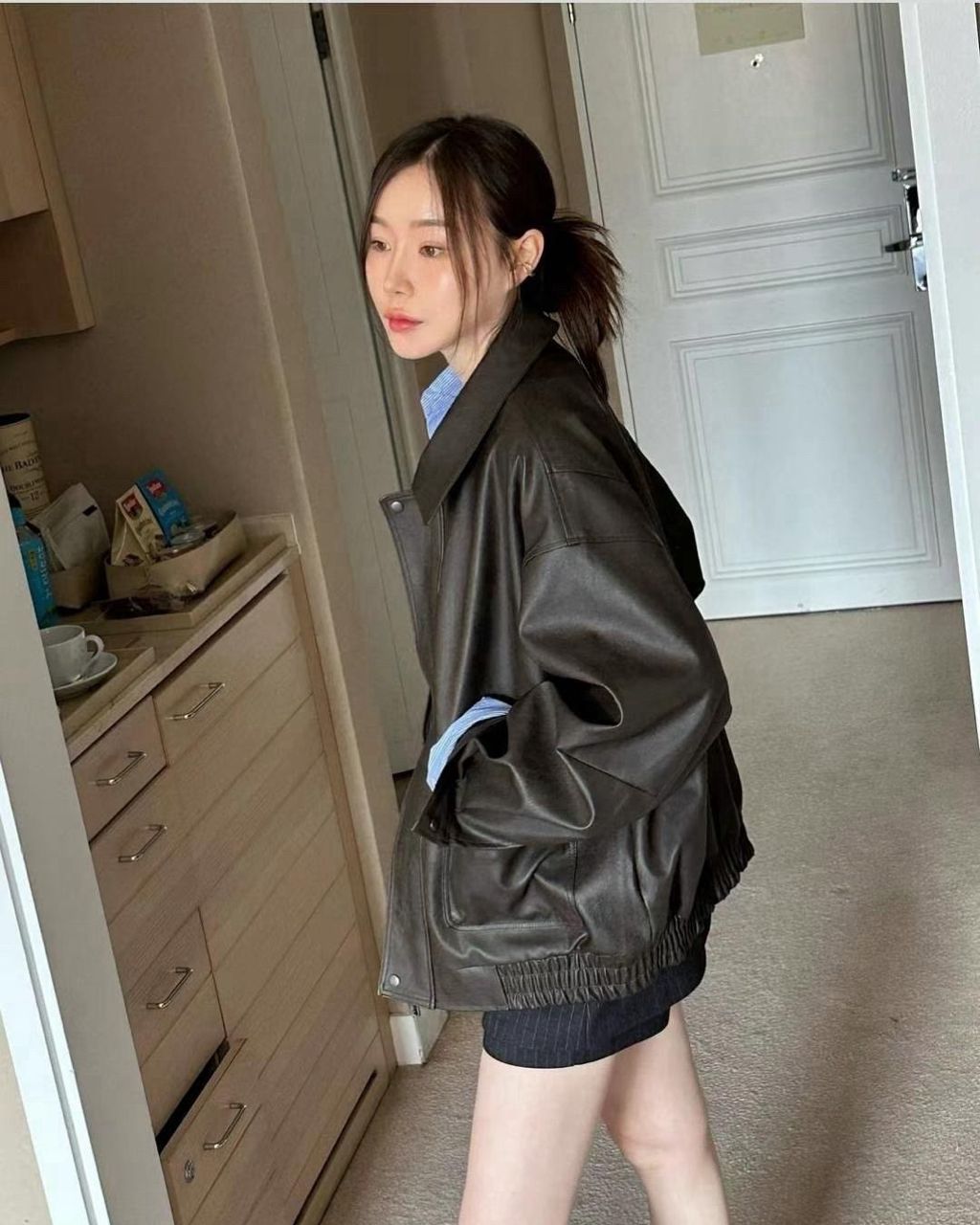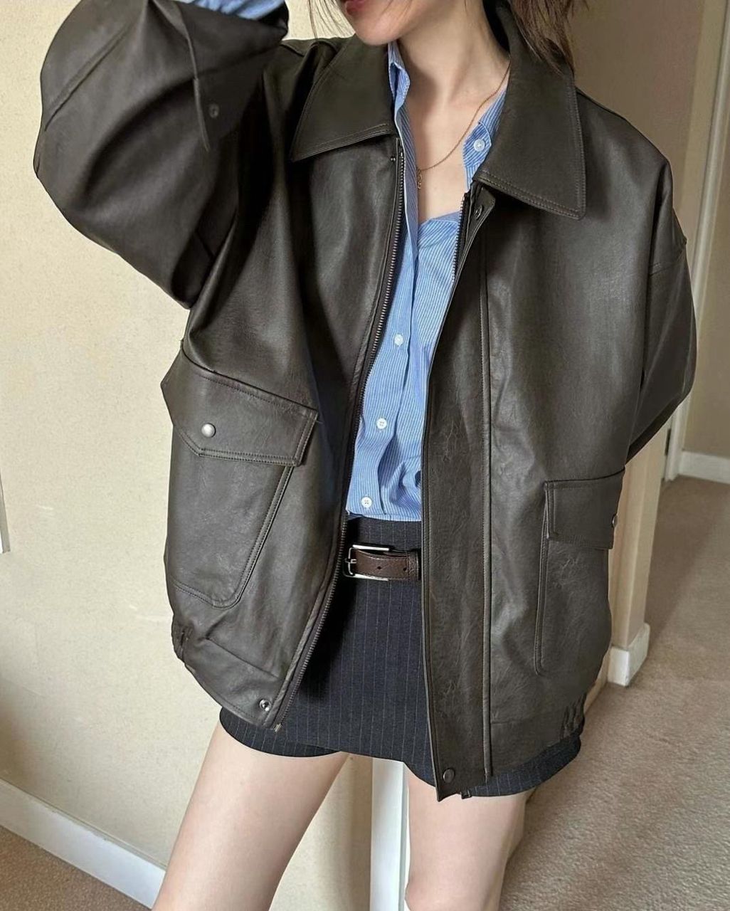 正韓 wearraw 霧光挺版皮外套 深咖色