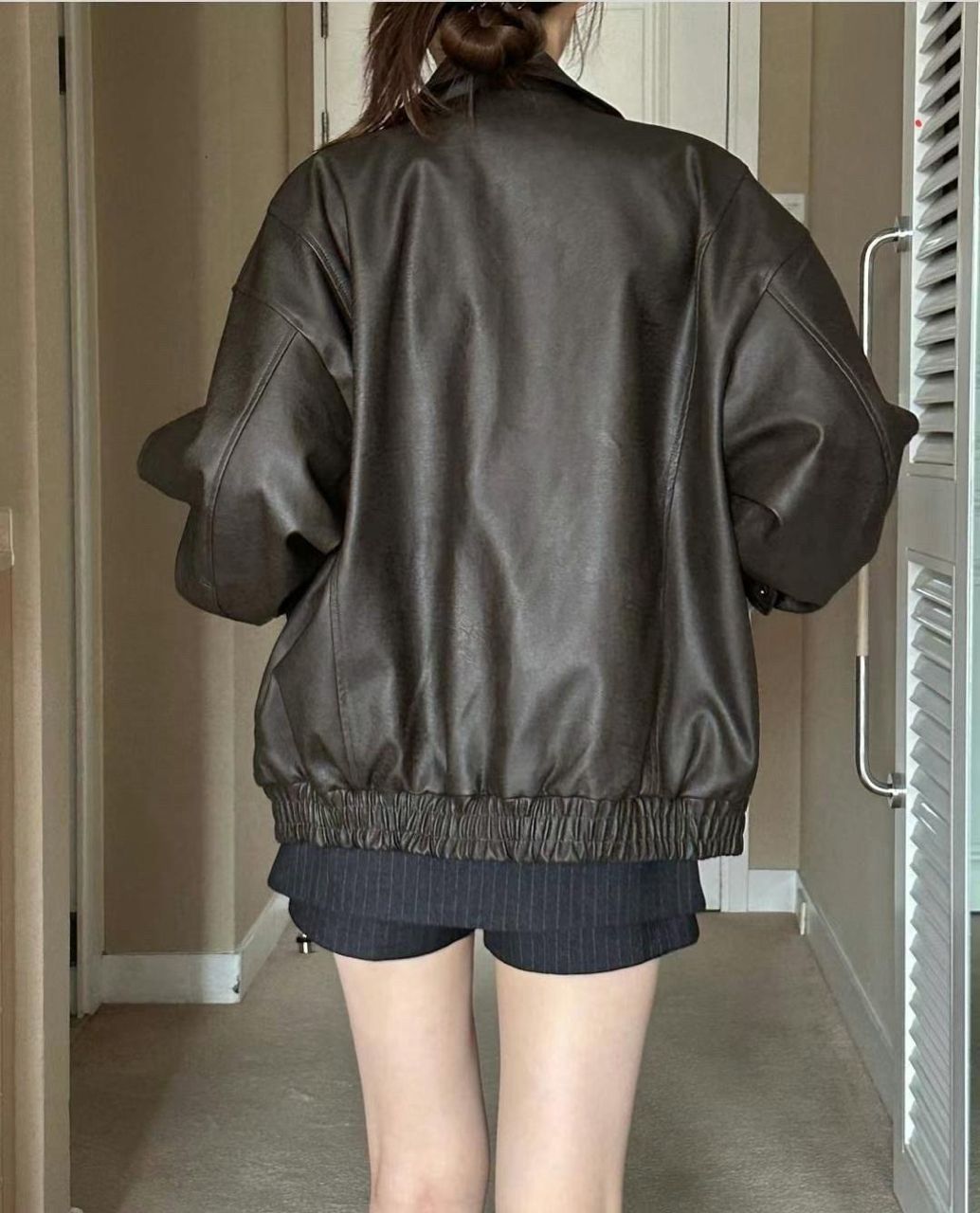 標題[全新/全國] 女-正韓 wearraw 咖色皮外套