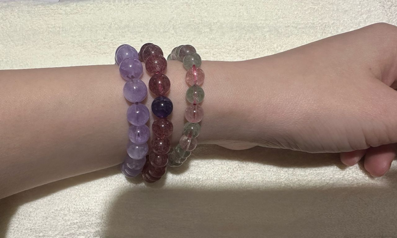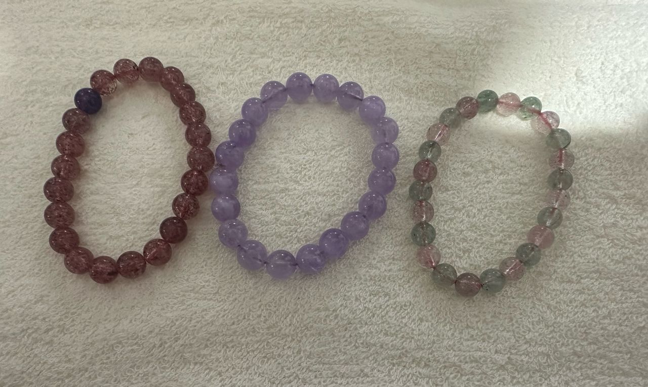 手串:粉紅綠色草莓晶、草莓晶、薰衣草紫水晶