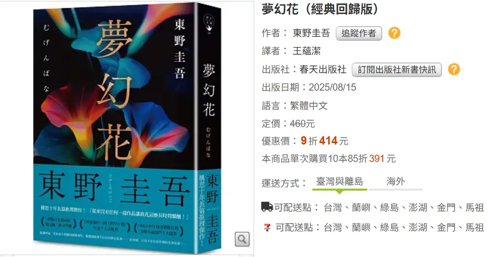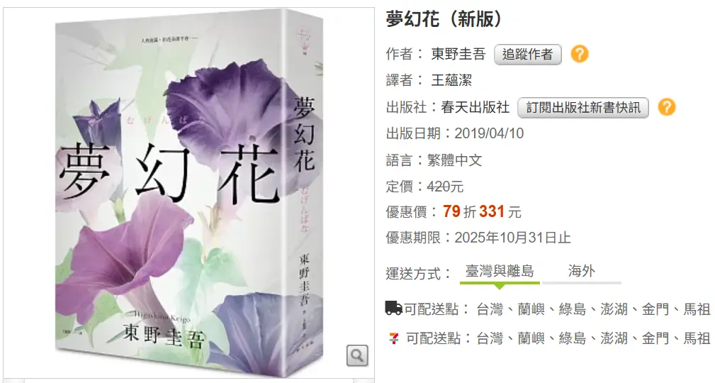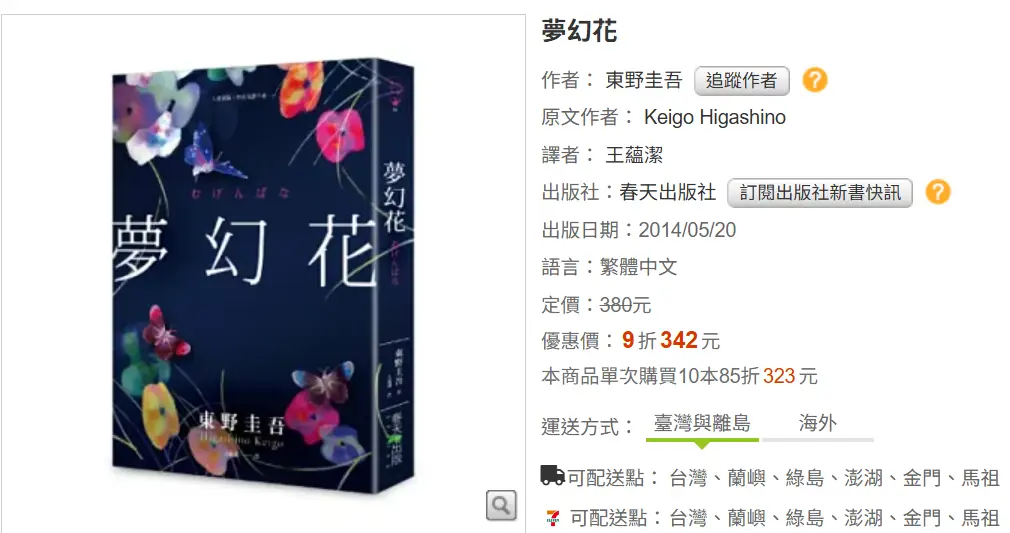 標題Re: [情報] 《夢幻花(經典回歸版)》東野圭吾