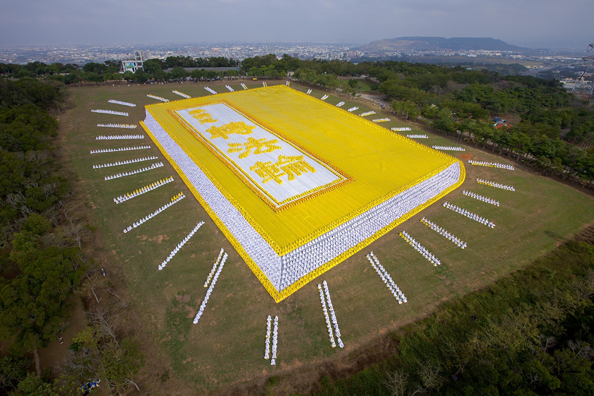 2018年11月24日,約五千四百名法輪功學員在台北自由廣場舉行大型排字及集體煉功活動
